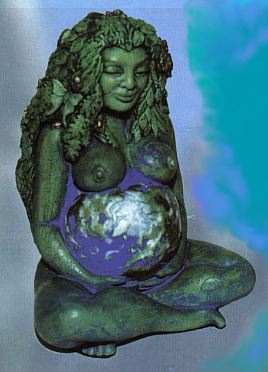 The Millennial Gaia is slightly taller than 7", and done in a basic green with a sea blue wash, with gold highlights and cloud forms on the Earth globe.